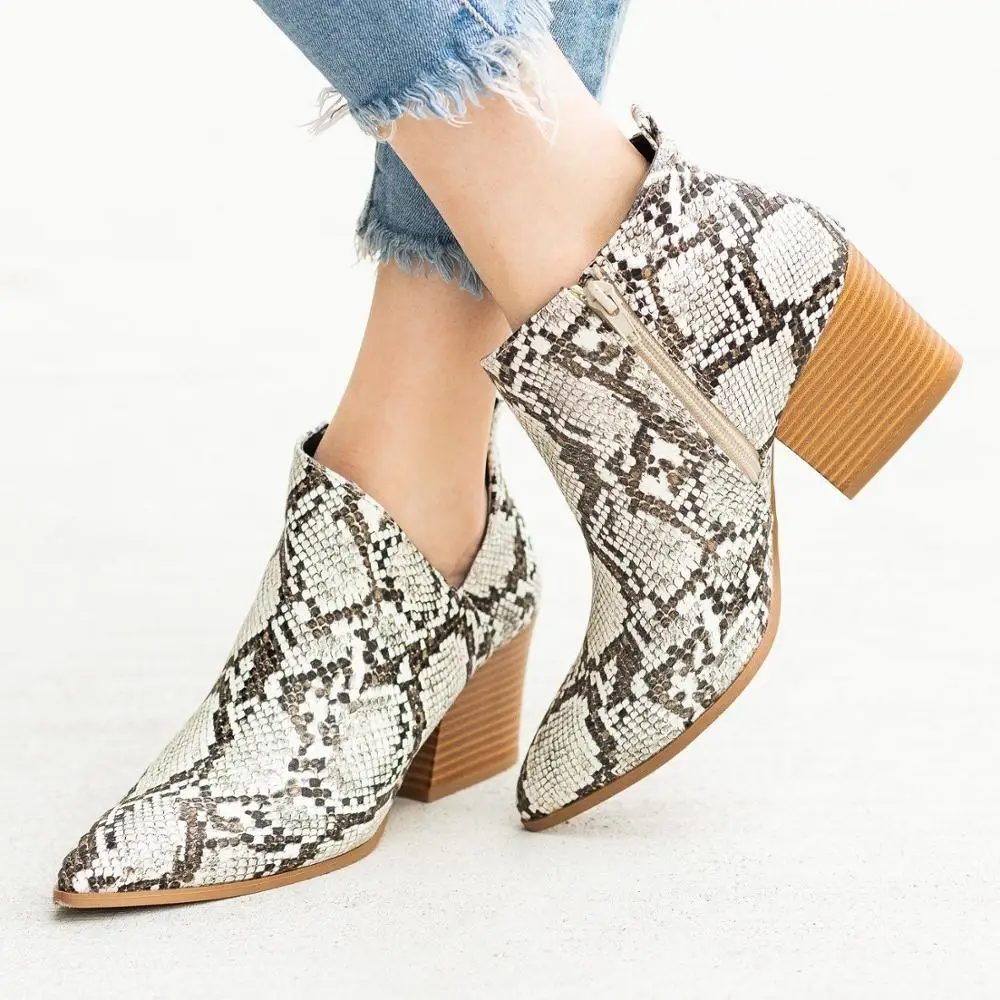 . (50% Off) Comprar SLHJC 2019 botas de cuero de otoño botas de leopardo de estilo Retro de tacón alto punta puntiaguda lateral v Slit más zapatos de tacón Online Baratos.
