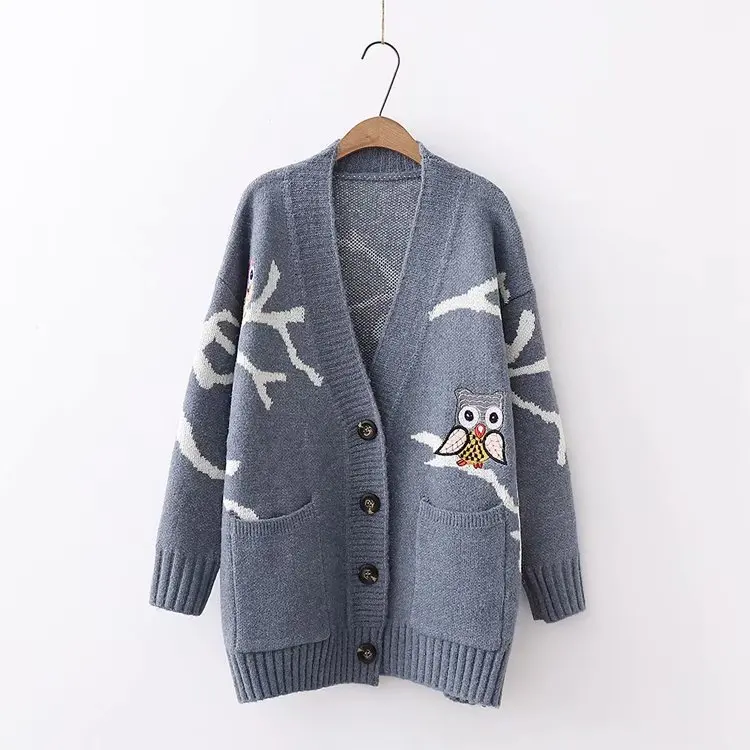 Special Offer Suéter de mujer recién llegado 2019 Otoño Invierno moda mujer cárdigan estampado animal tejido prendas de vestir exteriores beige Azul Rojo Discount 50% Today!