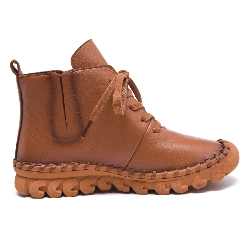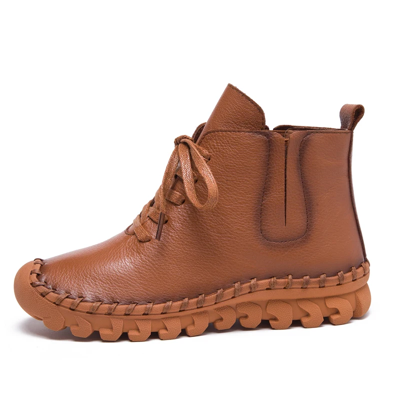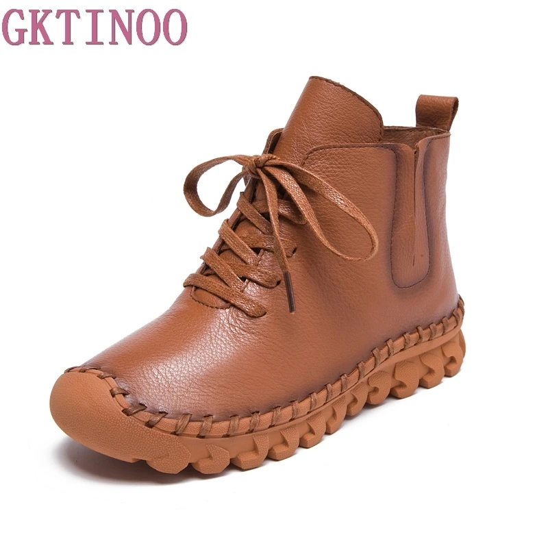 Special Offer Zapatos de cuero genuino botas de mujer 2019 Otoño Invierno moda hecho a mano botines cálidos suaves al aire libre Casual zapatos planos Mujer Discount 50% Today!