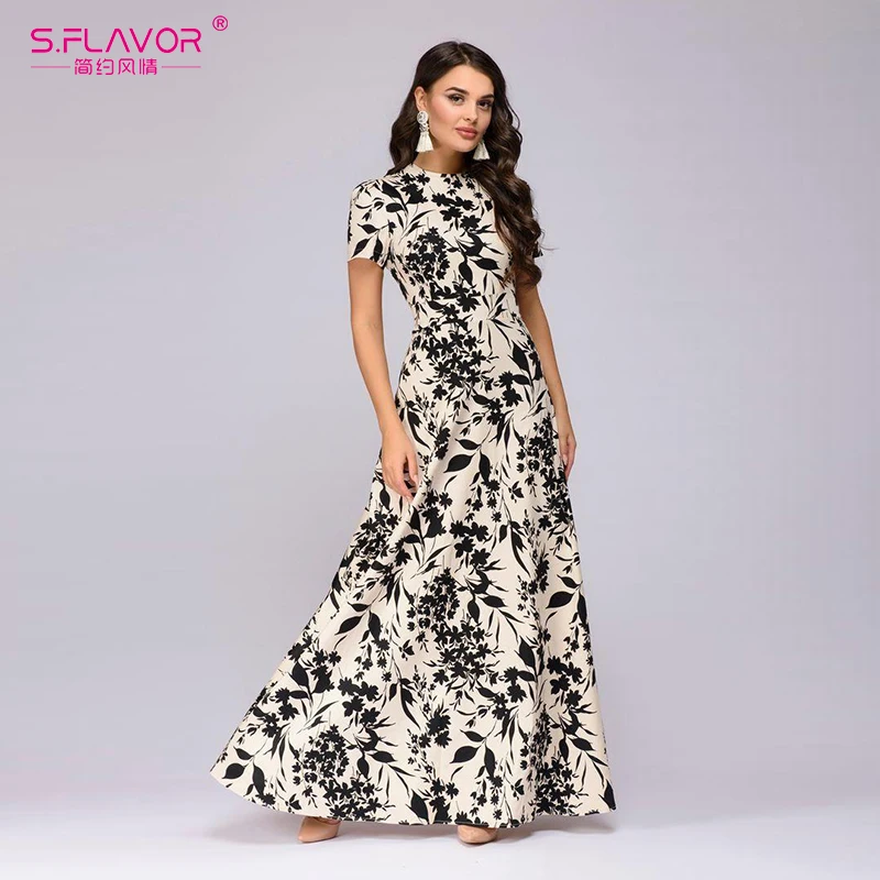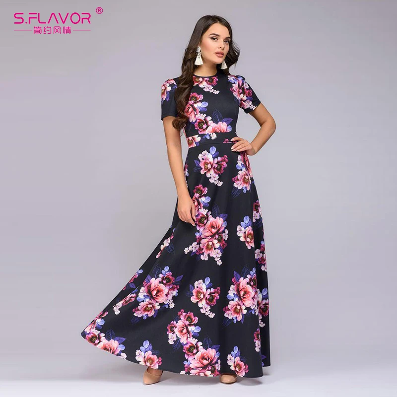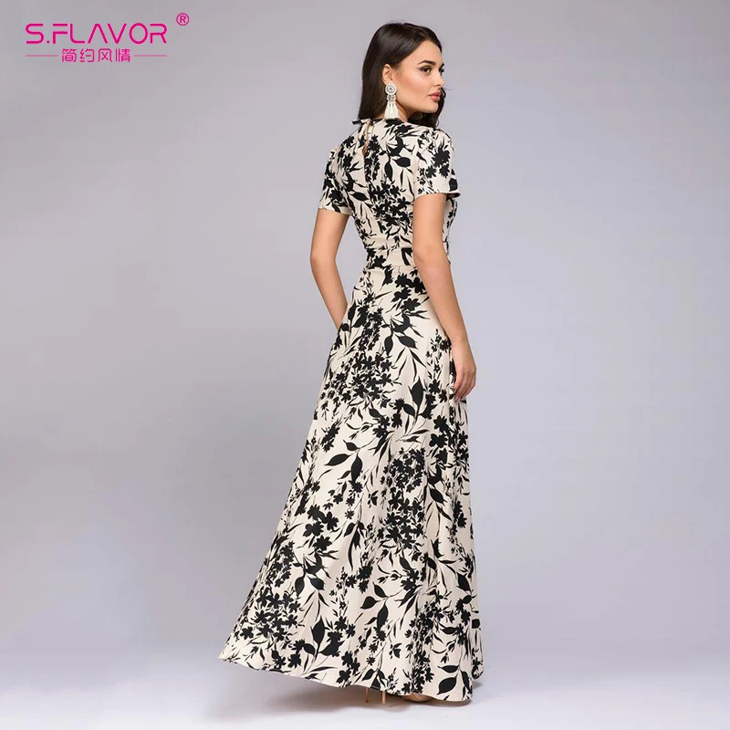 Special Offer S. FLAVOR mujer vestido largo manga corta estampado Floral Boho vestido elegante vestido de fiesta Maxi vestido de fiesta Discount 51% Today!