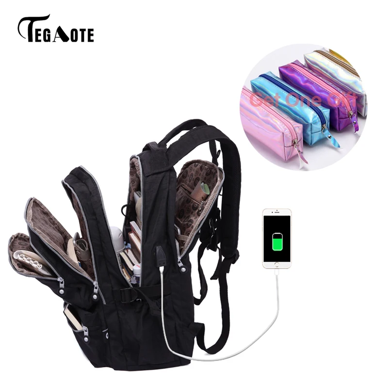 Special Offer Mochilas TEGAOTE para mujer antirrobo carga USB para ordenador portátil mochilas escolares para adolescentes Mochila de Nylon Casual bolsa de viaje A Dos Discount 60% Today!