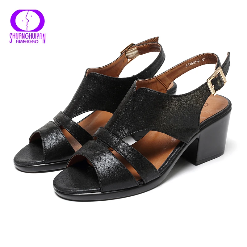 Special Offer AIMEIGAO sandalias de Punta abierta de alta calidad mujeres cuadradas tacones de tacón sandalias de verano zapatos de cuero suave cómodos zapatos de mujer Discount 65% Today!