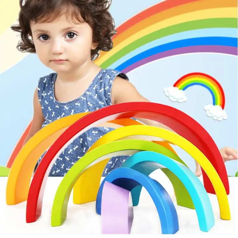 . (10% Off) Comprar Bloques de madera de juguete para niños bloques de arcoíris coloridos para niños Online Baratos.