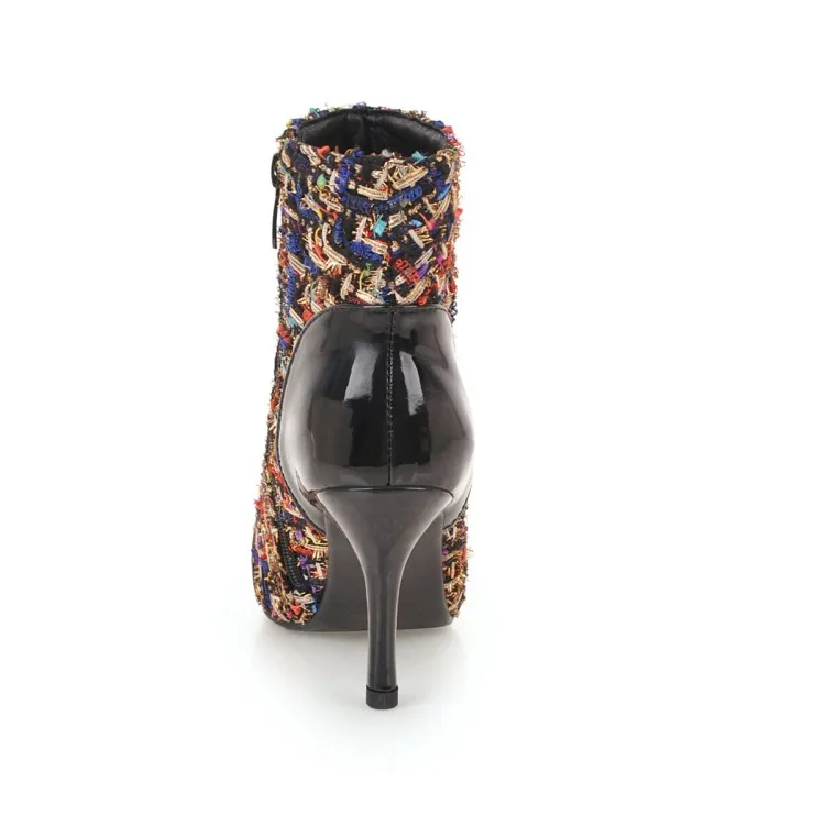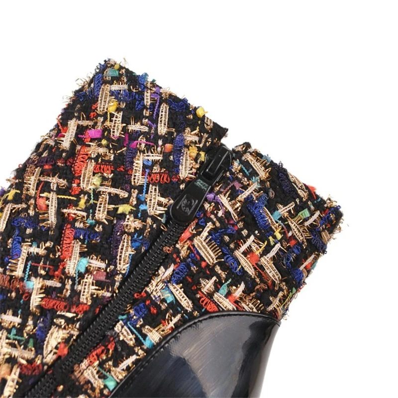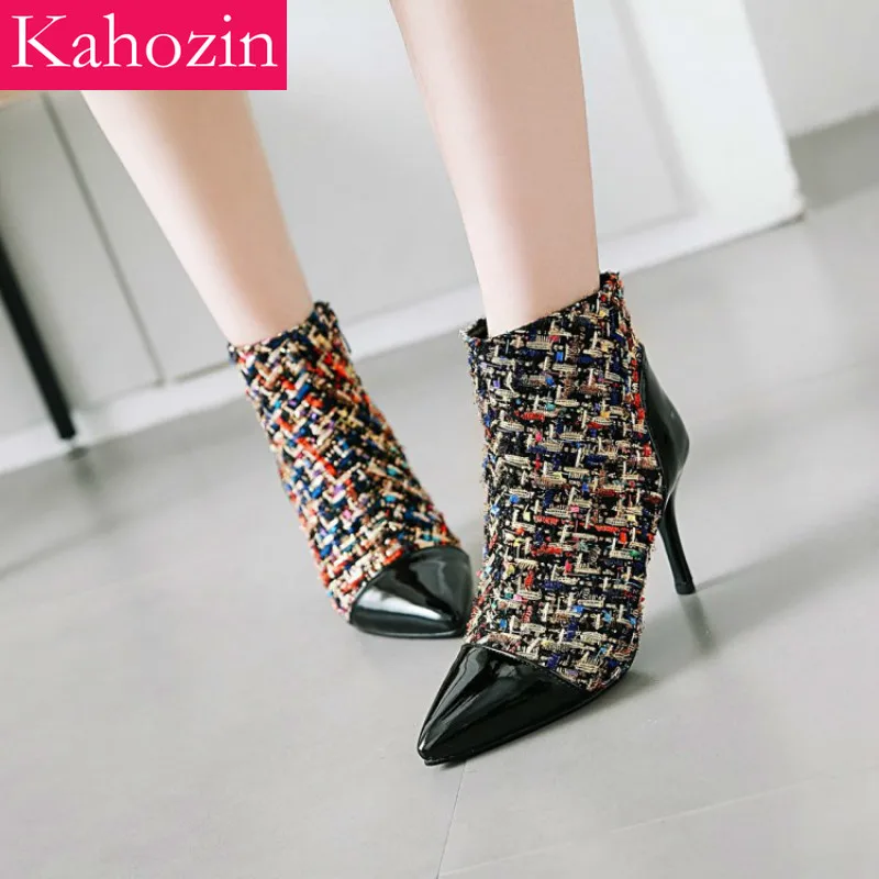 Special Offer Kahozin tacón alto tobillo botas tacones finos súper altos 8,5 CM punta puntiaguda tweeds + PU Zip Primavera otoño zapatos bonitos para mujeres casual Discount 29% Today!