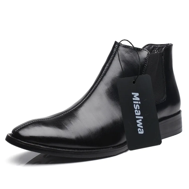 Special Offer Misalwa primavera invierno botas Chelsea de piel para hombre Zapatos de hombre británico de cuero Casual estilo Slip on vestido de novia botas cortas para hombre Discount 48% Today!