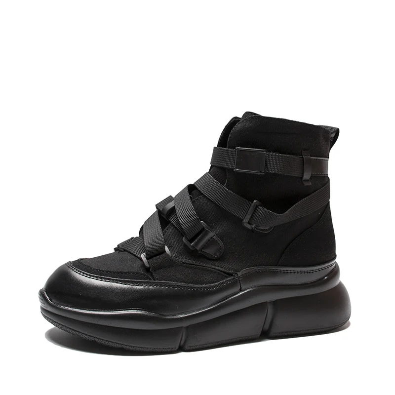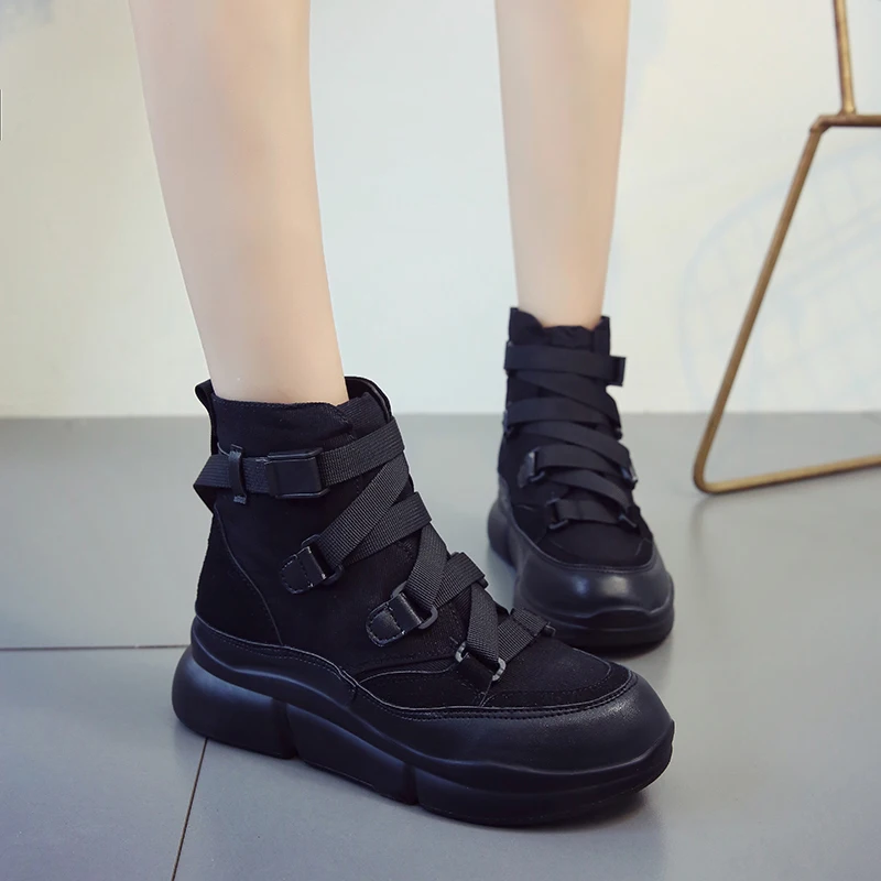 Special Offer Fujin 2019 nueva llegada botines de mujer de lona anzuelo botas de plataforma de moda Punk botas negras zapatos planos botas de invierno Discount 49% Today!