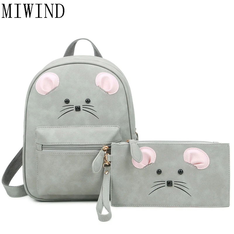 Special Offer MIWIND 2 bolsas juego de mochilas lindas para mujer 2017 mochilas remaches para estudiantes mochilas para niñas bolsos de hombro de cuero de moda TFS526 Discount 18% Today!