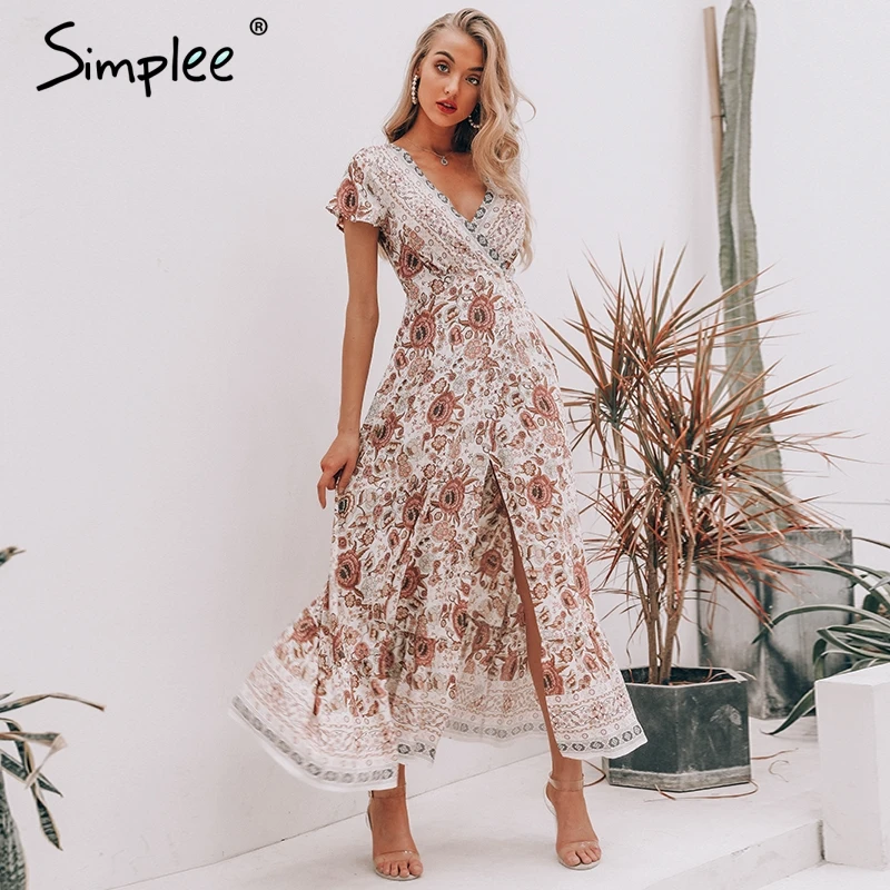 Special Offer Simplee Vintage vestido de verano con estampado floral con volantes y faja dividida sexy vestido largo bohemio para mujer Vestido de playa de vacaciones vestidos Discount 44% Today!