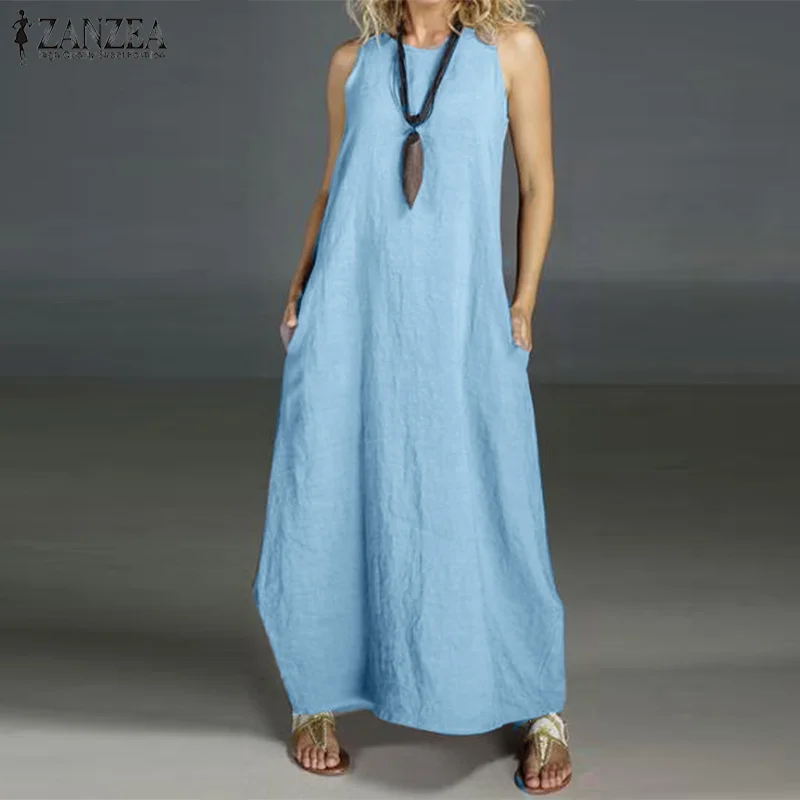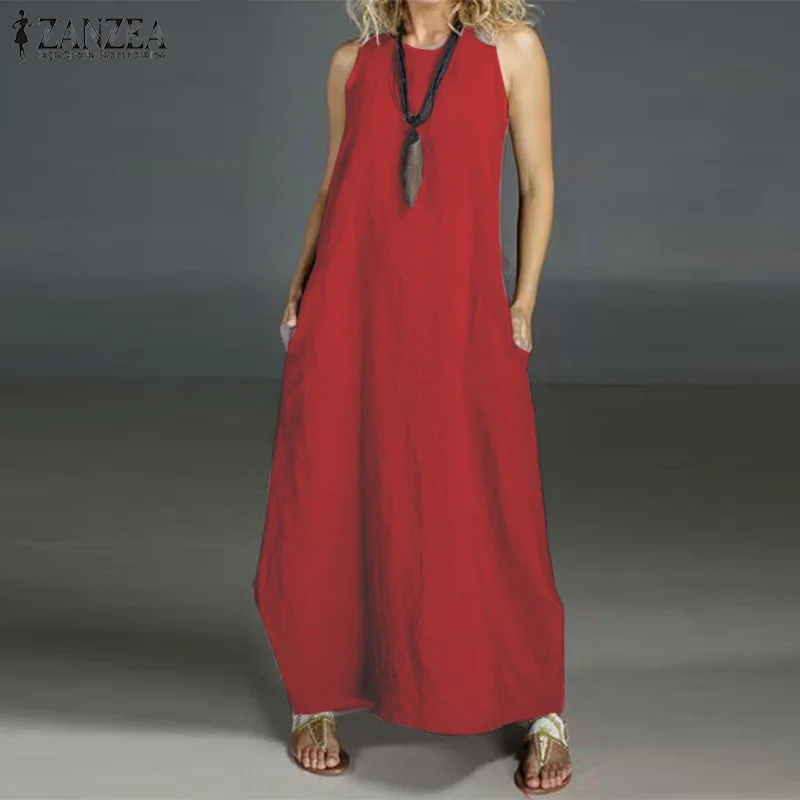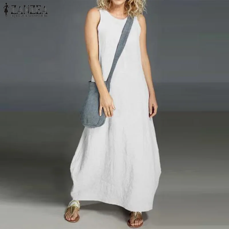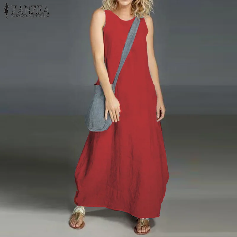 Special Offer Vestido de verano para mujer ZANZEA sin mangas Sarafans vestido de verano largo Maxi Vestidos de talla grande vestido de fiesta de playa para mujer 5XL Discount 46% Today!