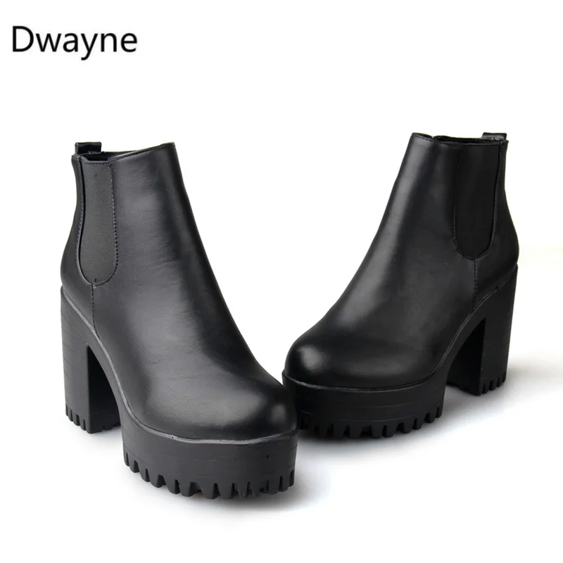 . (35% Off) Comprar Botas de Mujer a la moda dwin Botas de tacón cuadrado Botas de plataforma para Mujer de cuero PU Botas de alta bomba de muslo zapatos de motocicleta Online Baratos.