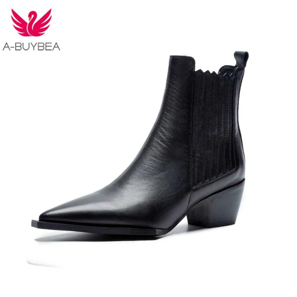 Special Offer Botas cortas de cuero de primavera para mujer botas de Chelsea de invierno negras para mujer Botines de mujer Discount 52% Today!